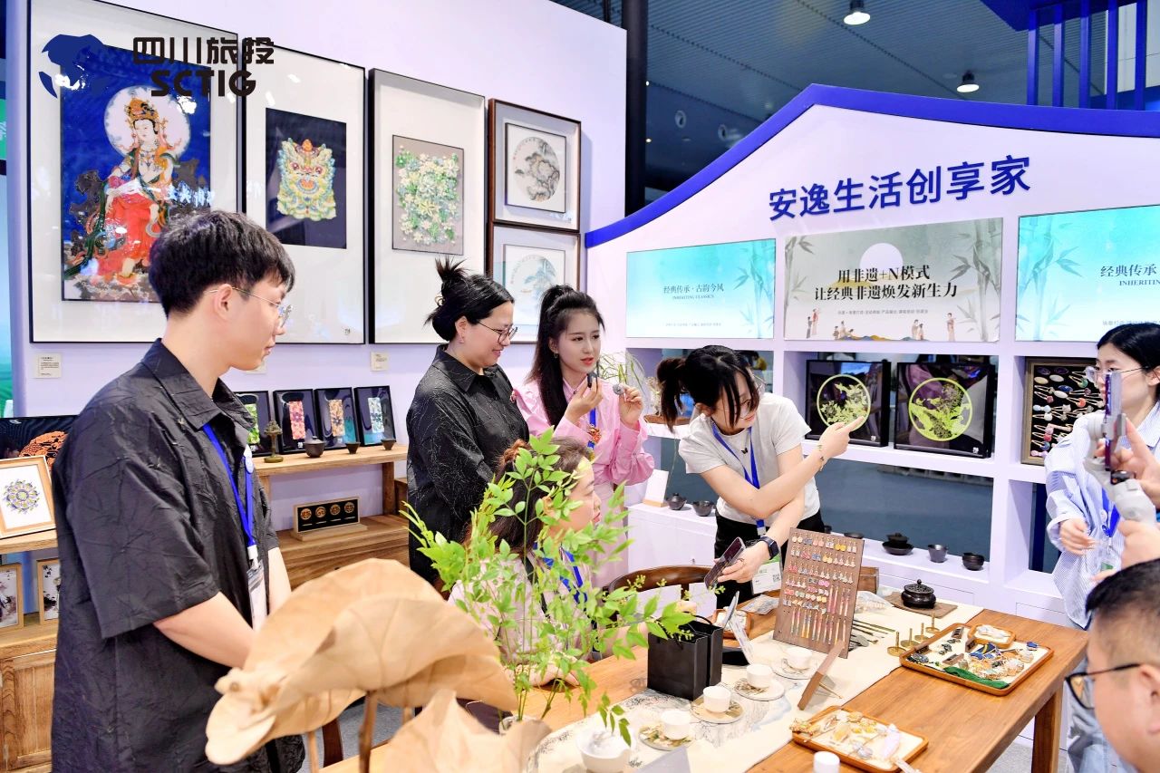 集团展馆接纳川西民居修建气概融合现代时尚设计,,,,,,,团结“四川WilliamHill中文官方网站”品牌形象的蓝白主色调,,,,,,,蓝色象征蜀地山水如诗如画、文旅工业蓬勃生长,,,,,,,白色寓意巴蜀文化纯净厚重,,,,,,,天府文脉气韵悠长,,,,,,,创意打造超130平方米陶醉式展区。。。。。全心妄想以推介销售为导向的展陈结构,,,,,,,重点展示摆设集团文博文创产品、旅行社旅游产品、研学产品、大康健产品以及“天府逍遥买”“有礼在四川“数字文旅平台,,,,,,,充分展现集团“一体两翼”生长战略下的阶段性效果。。。。。同时特邀集团品牌合作运动单位,,,,,,,共创非遗文创产品互动区,,,,,,,陶醉式打造文旅融合的展陈空间,,,,,,,转达文化和旅游相互赋能的深层价值,,,,,,,体现“诗和远方”相得益彰。。。。。